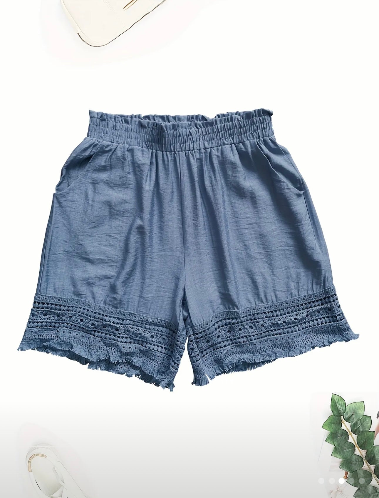 Vacation Ready, Women's Chic Lace-Trimmed Wide-Leg Shorts - Casual, Loose Fit with Elastic Waistband, Machine Washable - Perfect for Spring/Summer Item ID: UB69097 Composition: 20% Polyamide, 80% Viscose Material: Rayon Details: Contrast Lace Pattern: Solid color Sheer: No Contour: Loose Season: Spring/Summer/Fall Operation Instruction: Machine wash or professional dry clean Scene: Casual Style: Vacation Fit Type: Loose Fabric Elasticity: No Elasticity Printing Type: No Printing Weaving Method: Woven