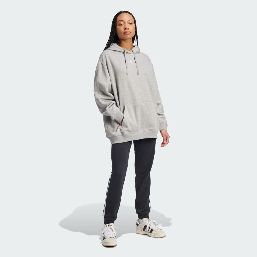 A COZY FLEECE HOODIE FOR RELAXING DAYS ON THE COUCH. For comfort and style without limits, this adidas Essentials hoodie is the one. Soft fleece settles you into comfort while the loose shape creates a casual look and feel. Perfect for lazy Sundays or quick errands, this go-to hoodie makes it easy to embrace laid-back moments. Details Loose fit • Drawcord-adjustable hood • 80% cotton, 20% recycled polyester fleece • Kangaroo pocket • Ribbed cuffs and hem Imported Product color: Medium Grey Heather • Product code: 1Y7345 Care WASHING INSTRUCTIONS Do not bleach Do not tumble dry @ Do not dry clean Touch up with warm iron Machine wash cold delicate cycle EXTRA CARE INFORMATION • Wash and iron inside out • Wash with like colors • Use mild detergent only • Do not iron motif • Wash dark colors separately