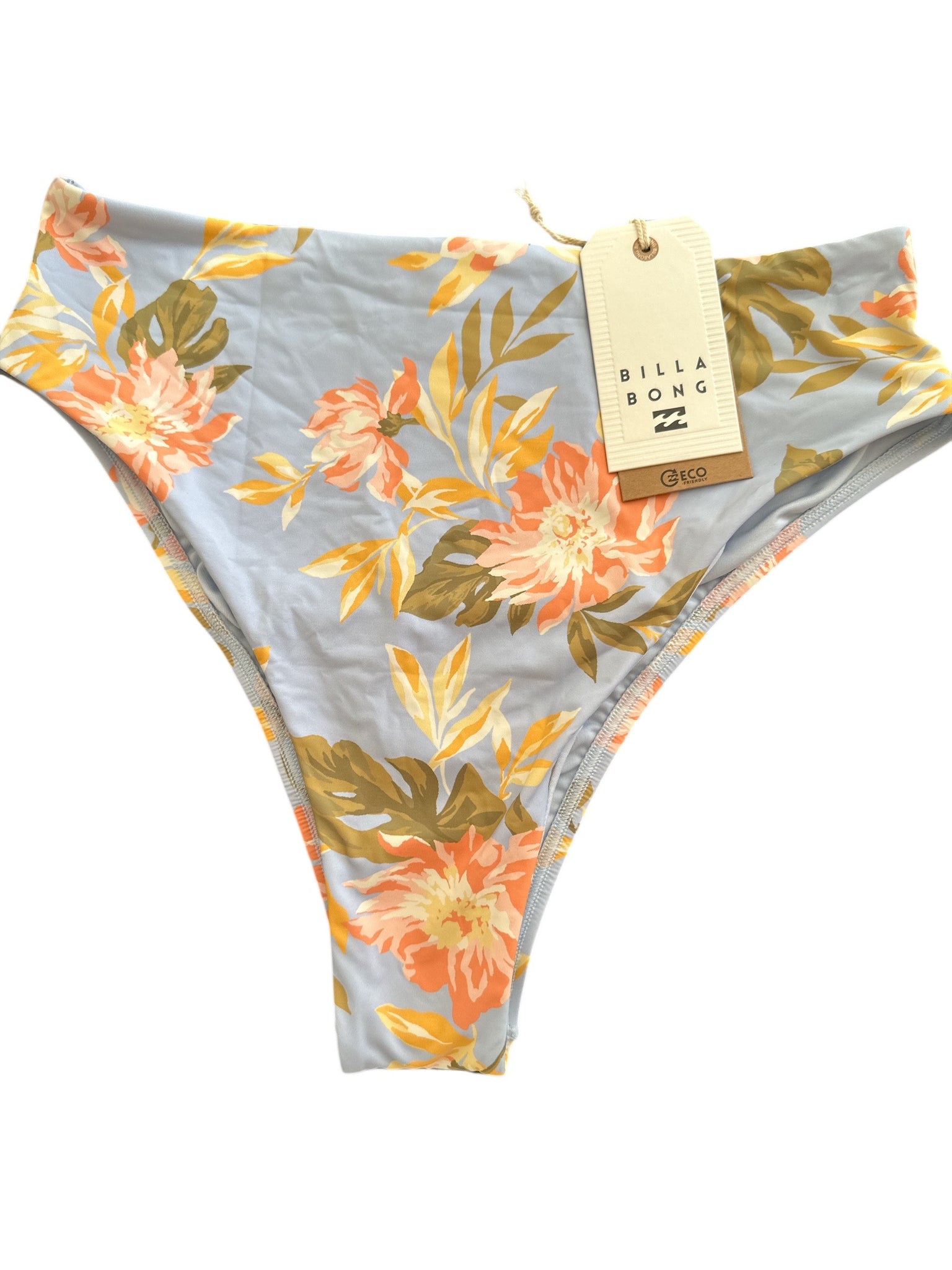 These Billabong bikini bottoms showcase a vibrant floral design in blue and orange, offering a modern and feminine high-rise silhouette. The cheeky cut and tropical print make them perfect for a stylish day at the beach. Super Skimpy Coverage Shell: Polyamide 78%, Elastane 22% Lining: 92% Polyester, Elastane 8% Hand Wash only: Hang dry in shade Made in Vietnam