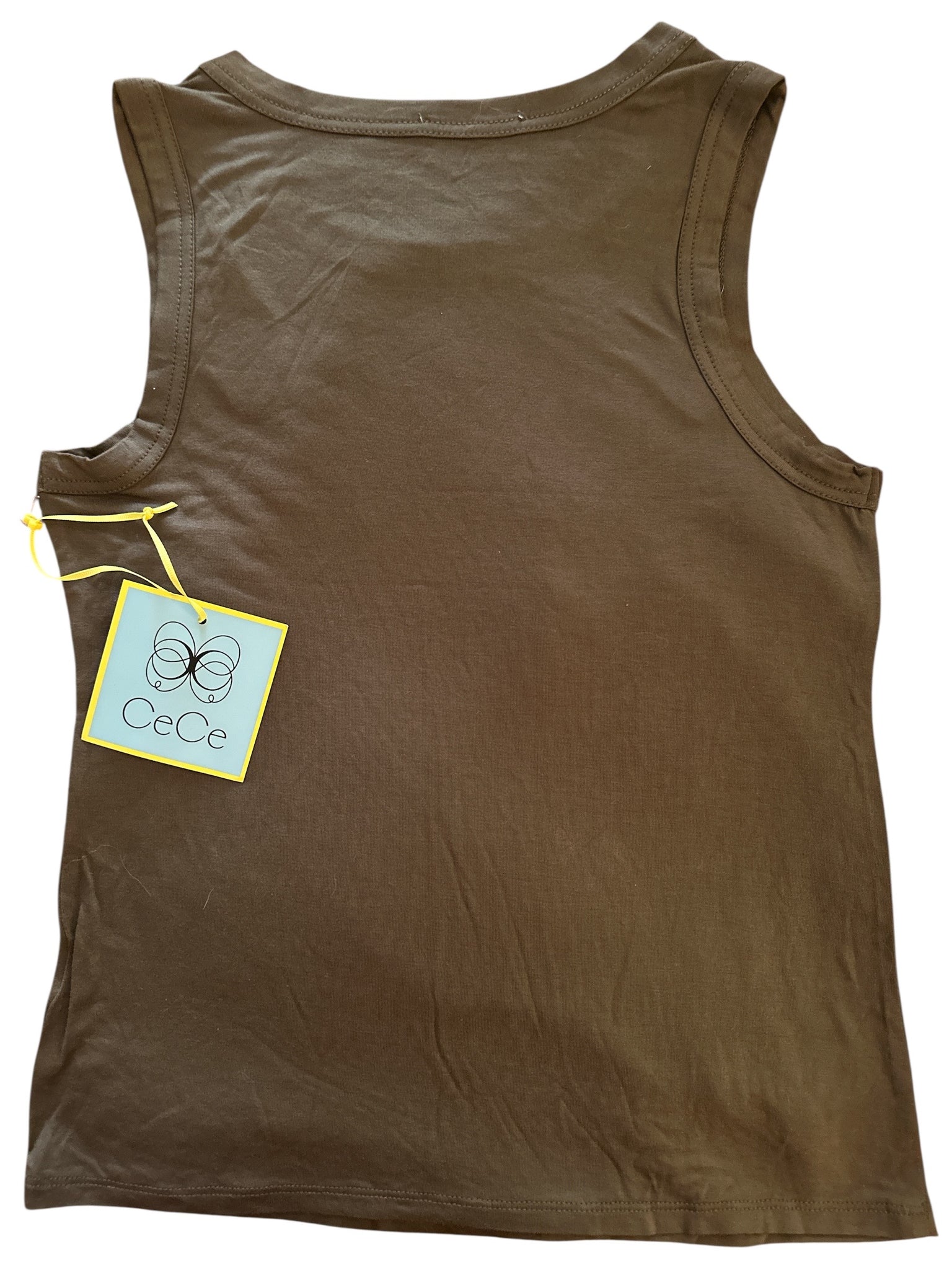 Stylish olive green sleeveless top perfect for casual outings. Comfortable and versatile for any wardrobe. Materials: 95% Rayon, 5% Spandex Care: Machine Wash Cold Very Stretchy, buttery soft