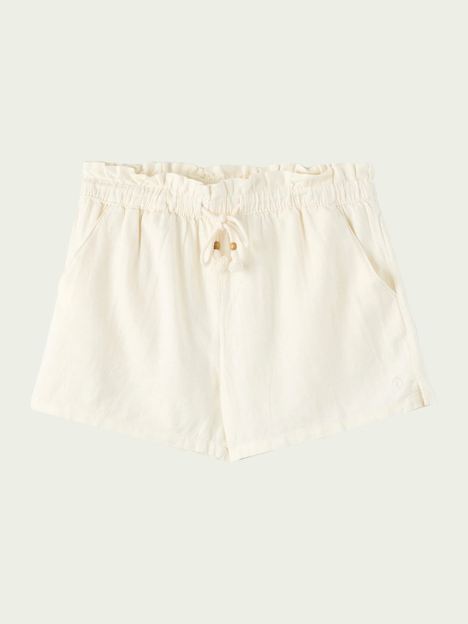 These super cute shorts are ready for sunny adventures or relaxing at home, featuring a breezy elastic waist and fun ruffle detail, these lightweight shorts are your new warm-weather essential. • Hang Ten Women's Shorts • Elastic waist with drawcord • Ruffle waist detail • Side hand pockets • Lightweight fabric feel • Solid color wash • 55% Linen, 45% Rayon
