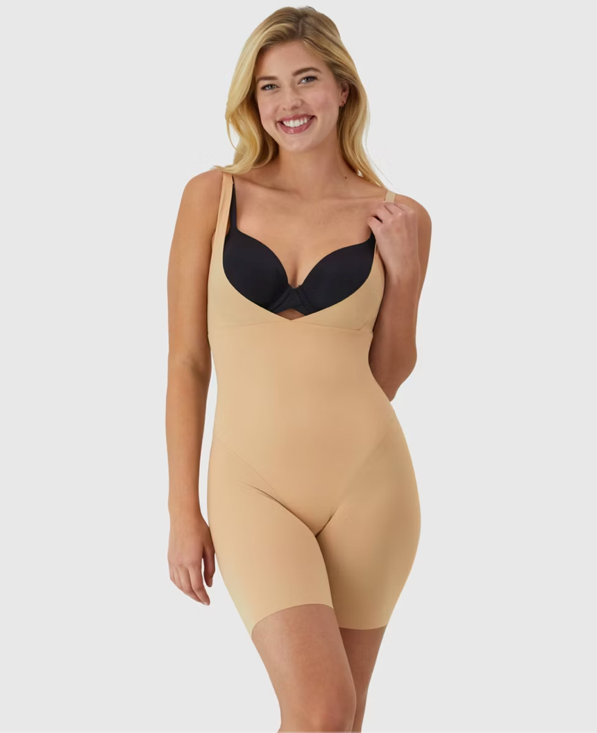 Maidenform Women's Firm Tummy-Control Instant Slimmer Long Leg Open Bust Body Shaper FL2556 SMOOTH CONTROL FROM BUST TO THIGH Slip on instant curve appeal when you target your midsection with the Maidenform Wear • TARGETED SHAPING - Women's shapewear targets your mid-section and provides smoothing in the tummy, hip, and thighs. • FIRM CONTROL - Fajas fabric hugs you firmly and smooths bulges so you can wear form-fitting clothing without regrets. • WYOB - Open bust styling means you can wear your own bra and choose the lift and fit across the bustline. • NO PINCH - Elastic-free leg openings eliminate the pinch and squeeze. • STAY COOL - Cool Comfort fabric wicks sweat from the skin, keeping you cooler and comfortable. • CUSTOMIZE THE FIT - Adjustable straps allow you to choose your own fit. • SPLIT GUSSET - For added convenience, this women's shapewear features a split gusset. • COLD WASH - Maidenform recommends machine washing in cold water to reduce energy consumption.