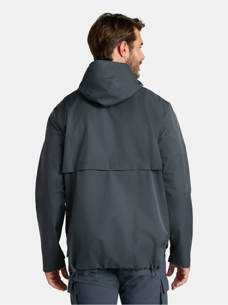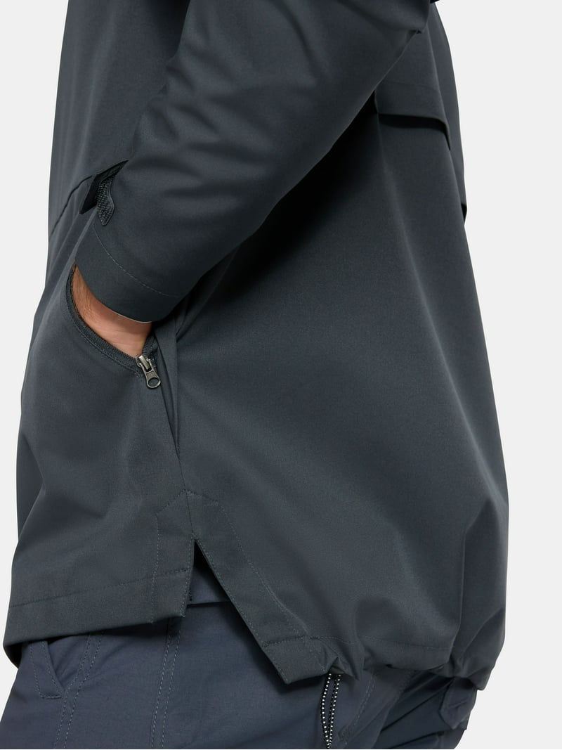 It?s raining, it?s pouring?and your outdoor plans still have the green light! This Men's Rain Jacket from Ozark Trail is a practical layer to help keep you covered and dry in wet weather. A center zip closure, with a concealing placket and magnetic snaps. Smart summary • Durable Material: Constructed from 100% polyester for both the shell and lining, ensuring a lightweight and regular fit. • Weather Protection: Features water-resistant and wind- resistant properties, along with an attached three-panel hood and a storm flap at the back. • Secure Closure: Equipped with a front zip closure, a concealing placket, and internal magnetic snaps for a secure and warm fit. • Adjustable Comfort: Includes long sleeves with hook-and-loop tabs for adjustability and bungee cords with stoppers at the hood and hem. • Convenient Storage: Provides hand pockets with zip closures to securely hold essential items. • Easy Care: Designed for simple maintenance, as it is machine washable