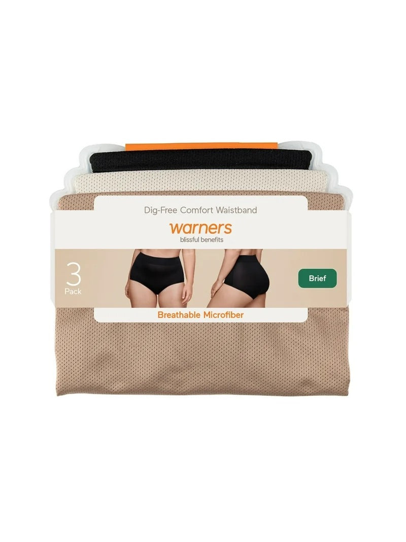 Our Warners® Blissful Benefits brief with full back coverage has a soft waistband that won't dig in, giving you a smoother look. This high-waist style is made with moisture-wicking material for all-day breathability. • Breathable and moisture-wicking mesh for surface interest • Waistband for No Muffin Top • Style number: RS4963W • Fabric material: 88.00% Polyester, 12.00% Elastane Features: Breathable, Moisture Wicking, Full Coverage Clothing Size: S Brand: Warners Blissful Benefits Gender: Female Model: RS4963W Color: Toasted Almond/Butterscotch/Black Manufacturer: Warnaco Inc